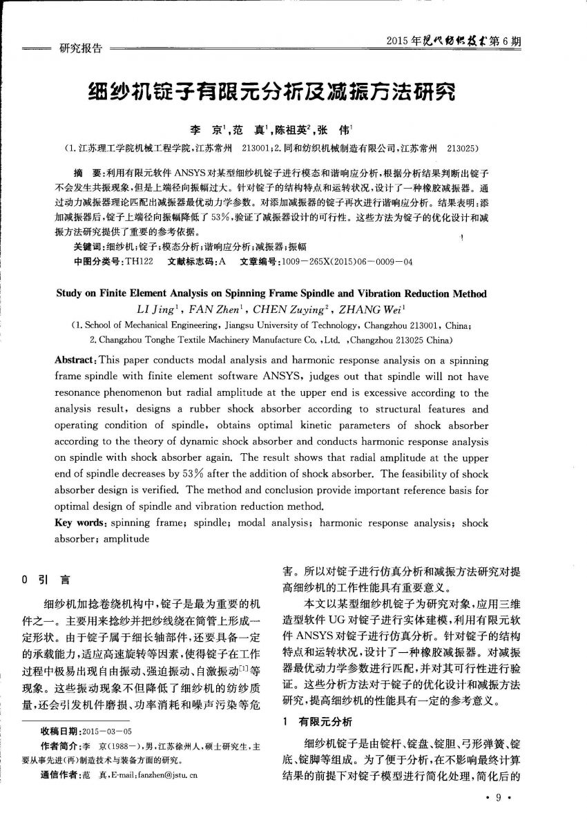 細紗機錠子有限元分析